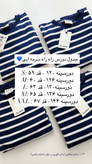 / M: دورسینه ۱۲۶- قد ۶۰ / L: دورسینه ۱۳۰- قد۶۳ / Xl: دورسینه ۱۳۶- قد ۶۵ / Xxl : دورسینه ۱۴۴- قد۶۷