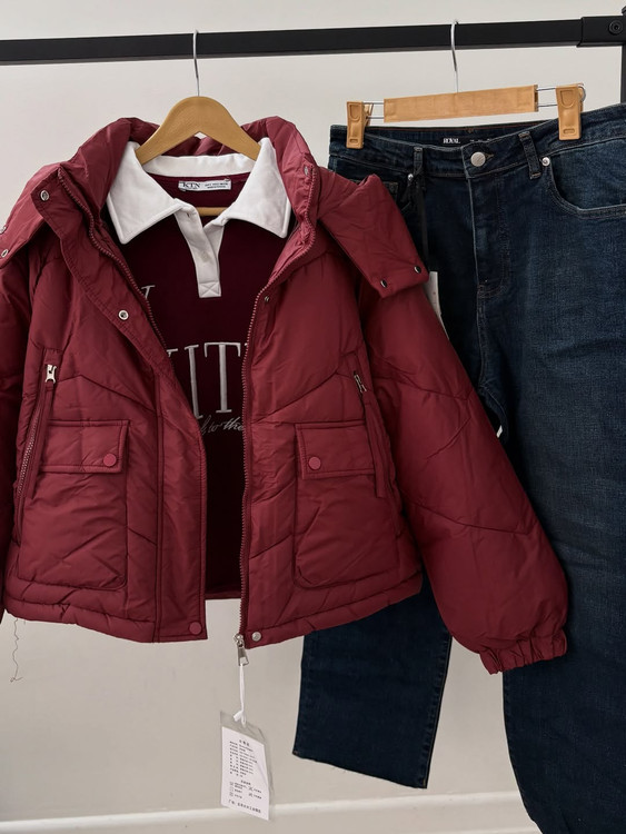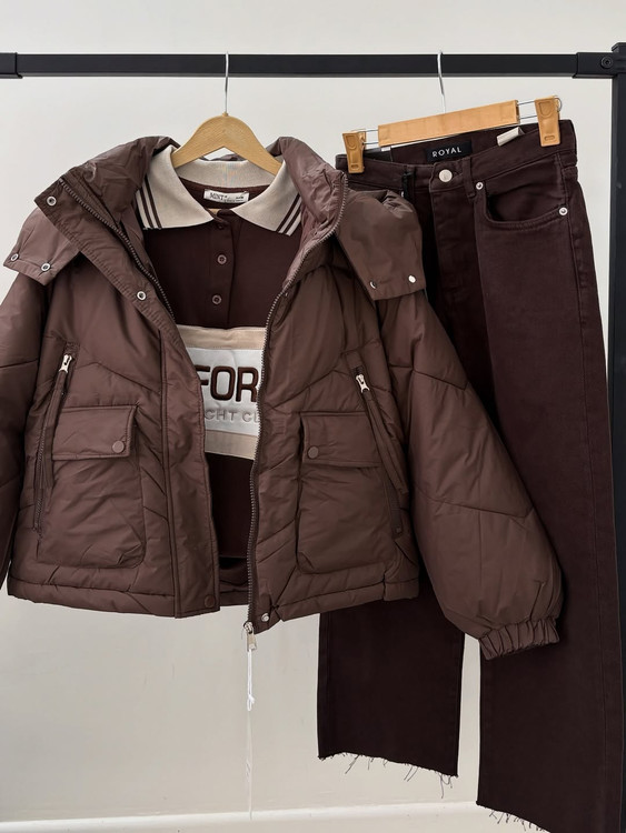 کاپشن وارداتی کلاهدار قهوه ایی/ زرشکی
