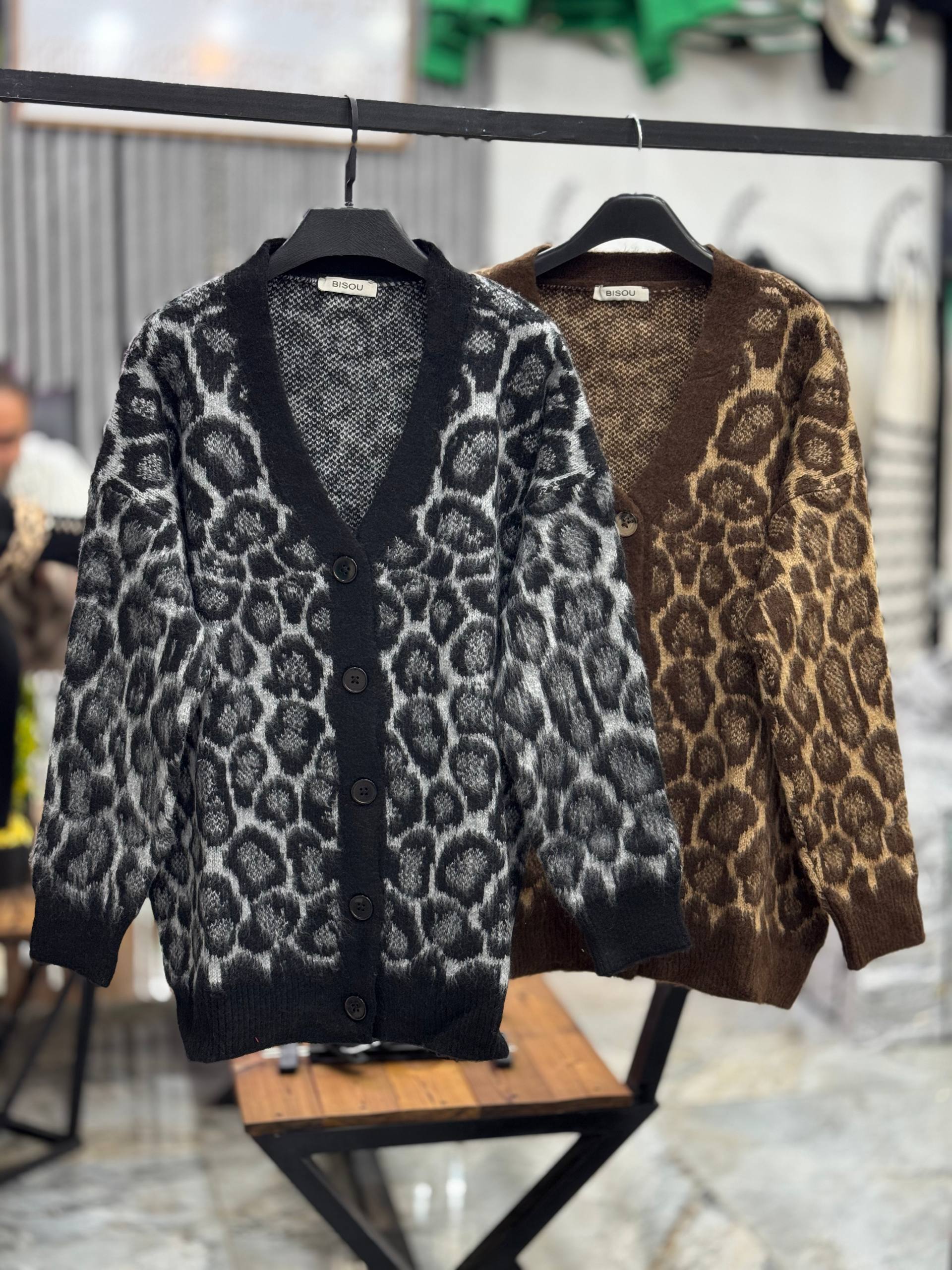ژاکت ترک طرح پلنگی تک رنگ طوسی مشکی😍